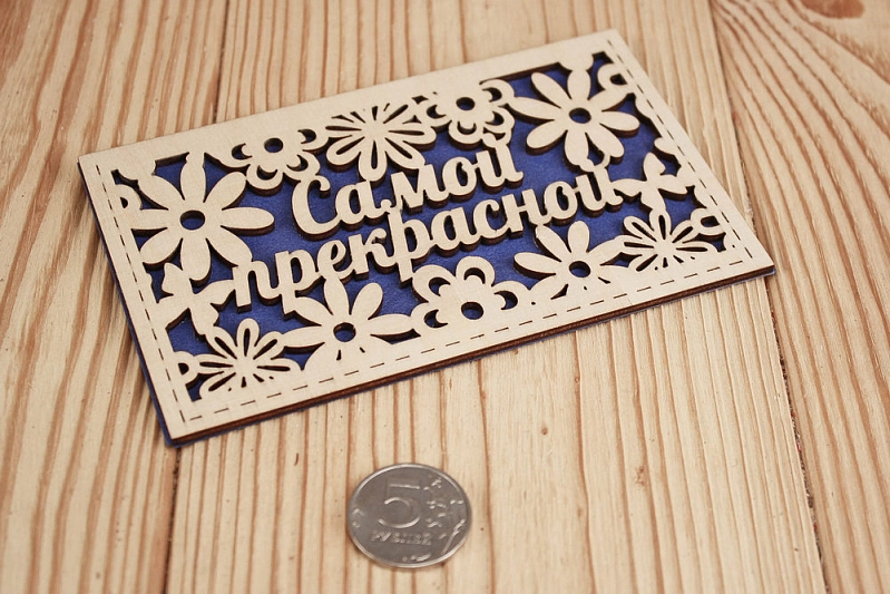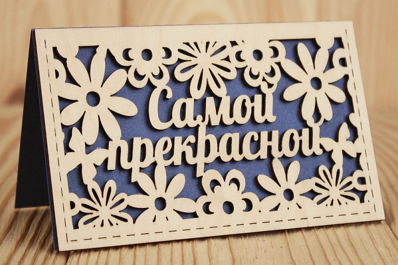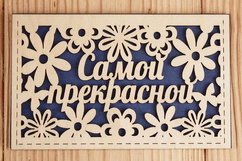 ОпдФ04-00-0008 Открытка "Самой прекрасной" (9*14) Фанера 3мм, картон, оформл., Синий, 1 шт.