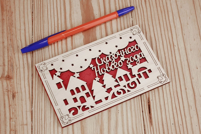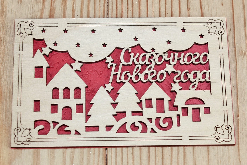 Открытка "Сказочного Нового года" (9*14) Фанера 3мм, картон, оформл., Красный, 1 шт.