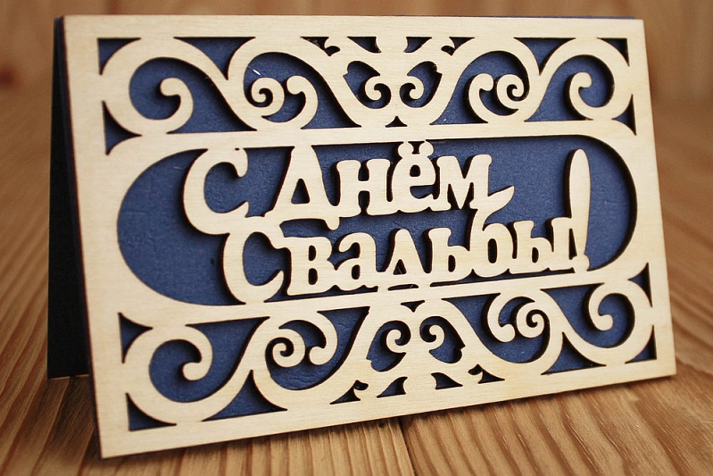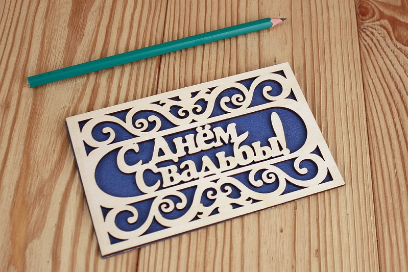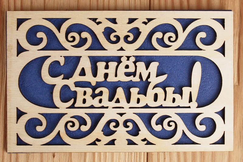 Изготовленная из качественной фанеры толщиной 3мм и картона, она сочетает в себе прочность и элегантный внешний вид. Открытка оформлена в нежном синем цвете, что добавит ей романтичности и торжественности.
