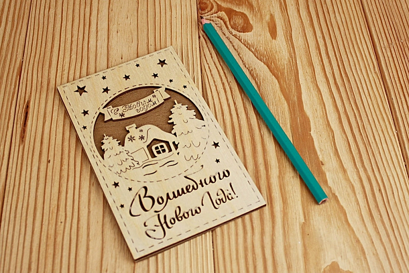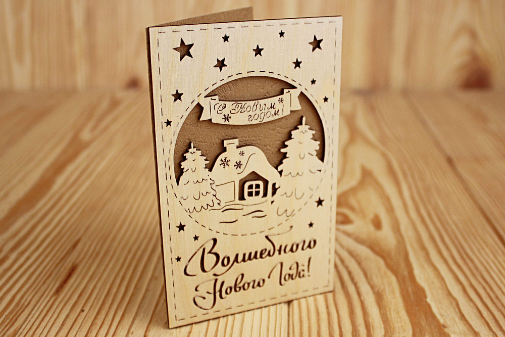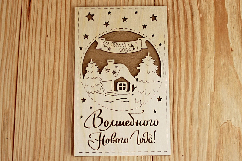 Эта очаровательная открытка станет прекрасным дополнением к вашему новогоднему поздравлению! Изготовленная из качественной фанеры толщиной 3 мм и плотного картона, она прослужит долго и будет напоминать о теплых моментах.