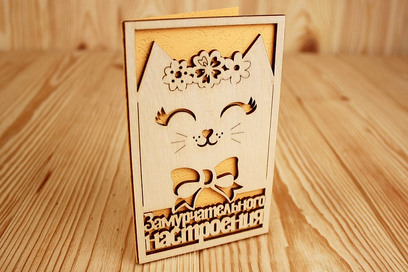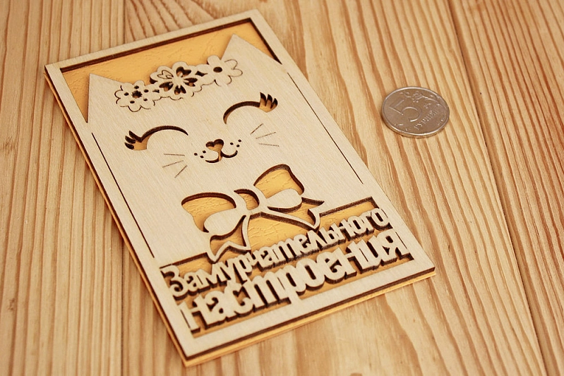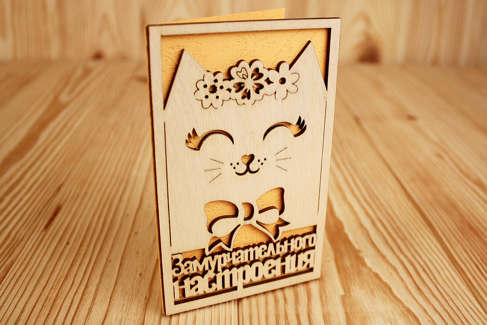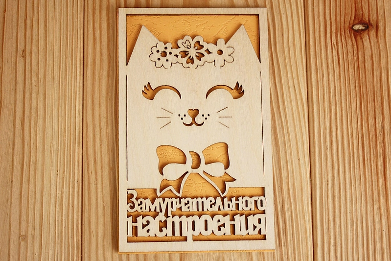 Открытка "Замурчательного настроения" (9*14) Фанера 3мм, картон, оформл., Желтый, 1 шт.