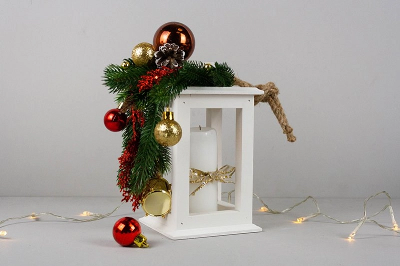 Фонарь малый (11*11*20) Дерево, окраш., Белый, 1 шт.