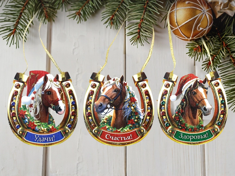 Сув804-00-0000 Набор сувениров "Подкова с Лошадью". МДФ, УФ печать, Набор 3 шт.