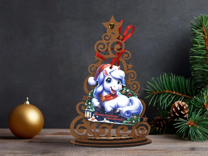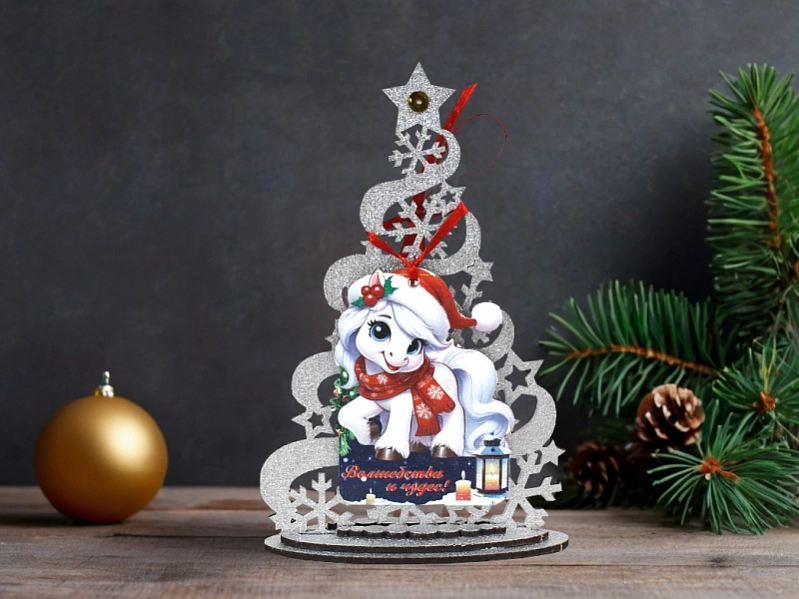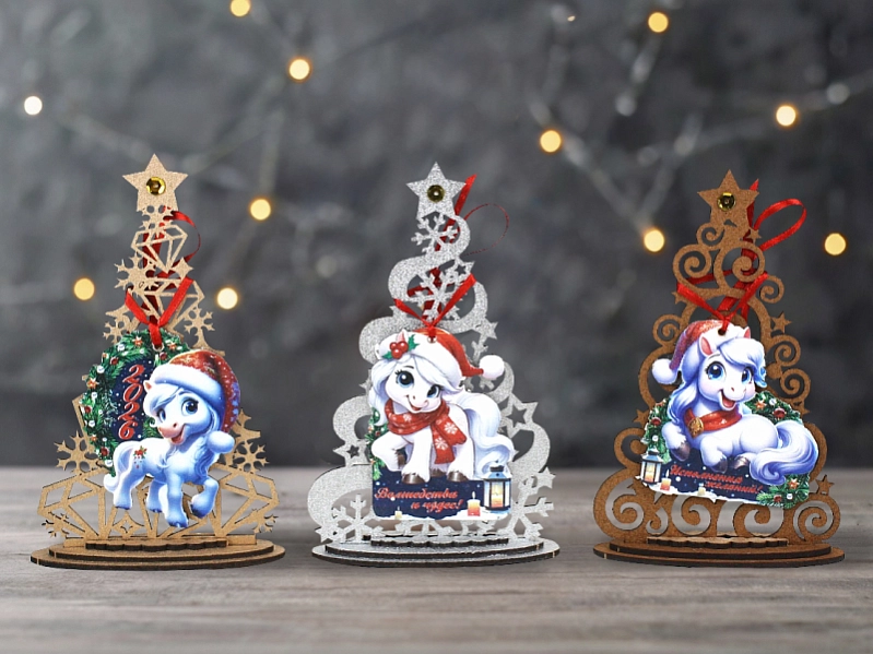 Сув837-02-0000 Набор сувениров "Ёлка с Лошадкой" (9,5*4*15) МДФ, УФ печать, окраш., оформл., Набор 3 шт.