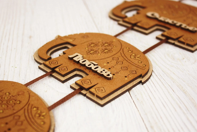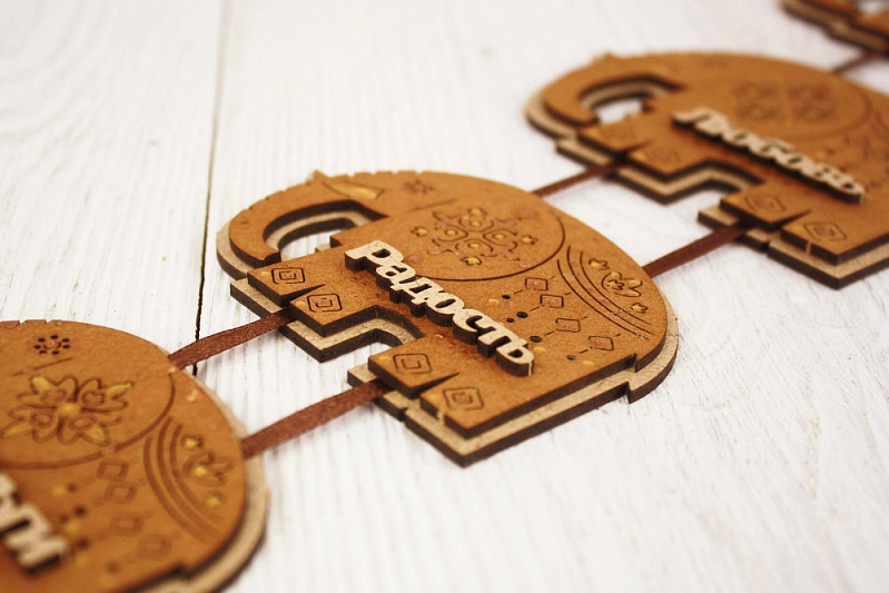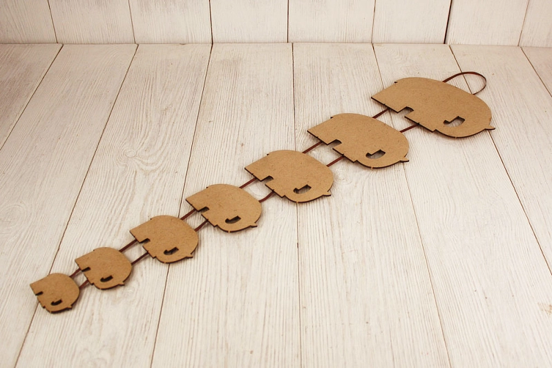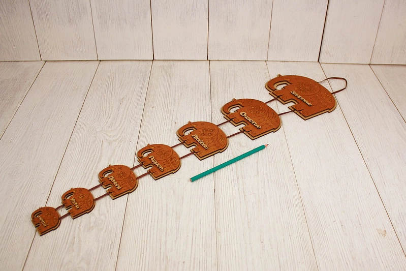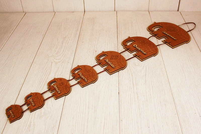 Сувенир-подвеска "7 слонов" №2 (26*70) МДФ, окрашен. морилкой, оформл., Дуб, 1 шт.