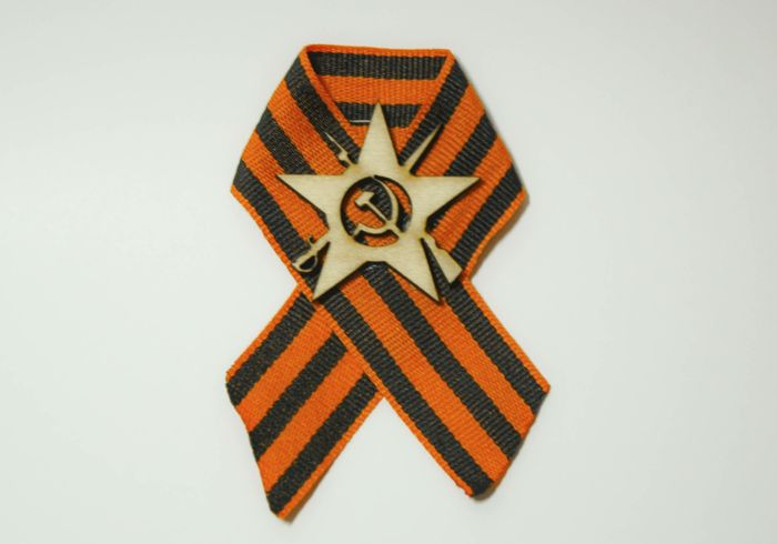 Значок К Дню Победы" Георгиевская лента (5*10) Фанера 3мм, лента, неокраш., оформл., Оранжевый-чёрны
