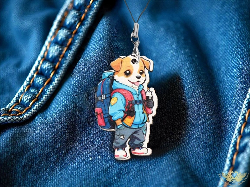 НК105 Брелок "Собака с рюкзаком". МДФ, УФ печать, 1 шт.