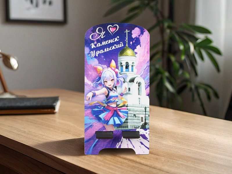 Подставка для телефона "Я люблю Каменск-Уральский. Аниме". 1 шт. БЕЗ СБОРКИ