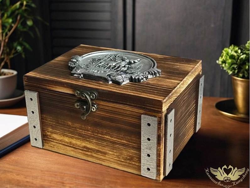 Оформление с обжигом придает шкатулке неповторимый шарм и подчеркивает детализированное изображение оленей, затерявшихся в зимнем лесу. 🦌 Такой декор добавит тепла и уюта в ваш дом, особенно в холодное время года. ❄️