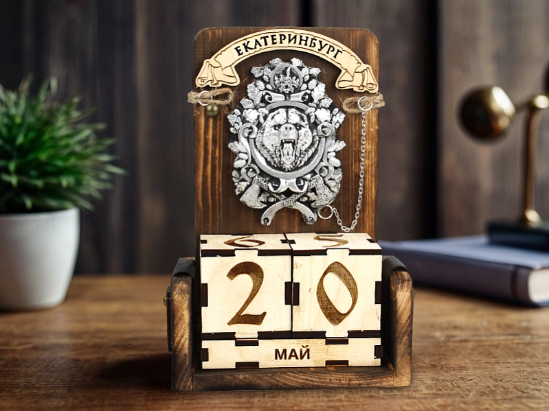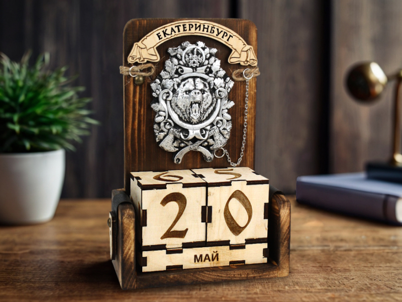 НК50 Вечный календарь "Екатеринбург" с медведем (11,5*6*18) Дерево, гипс, с обжигом, оформл., 1шт.