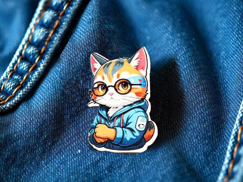 НК115 Значок "Кот в очках". МДФ, УФ печать, 1 шт.