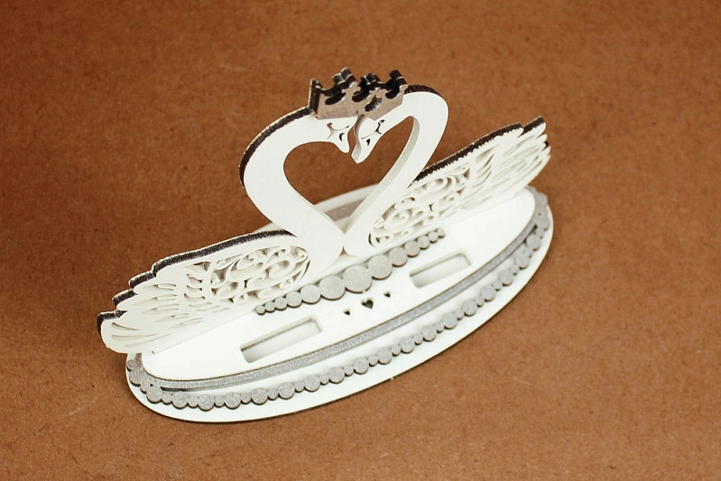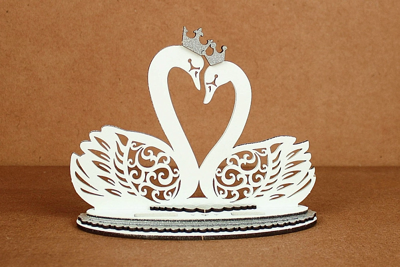 Б183-02-0302 Подставка под кольца "Лебеди" (17*7*13,5) МДФ 3мм, окрашен., оформл., Белый-серебро, 1 шт.