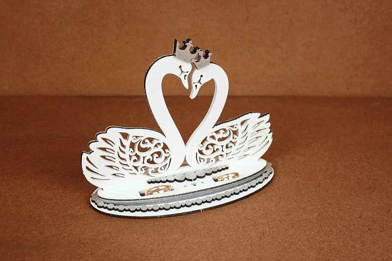 Подставка под кольца "Лебеди" (17*7*13,5) МДФ 3мм, окрашен., оформл., Белый-серебро, 1 шт.