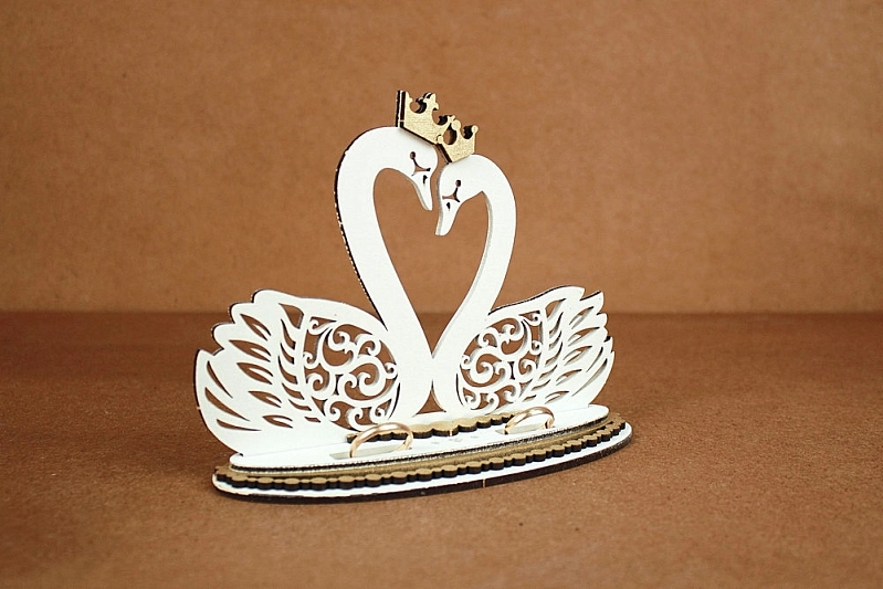 Подставка под кольца "Лебеди" (17*7*13,5) МДФ 3мм, окрашен., оформл., Белый-золото, 1 шт.