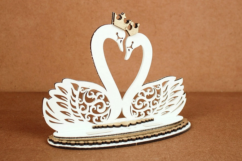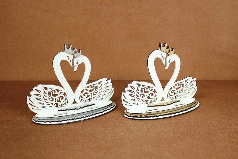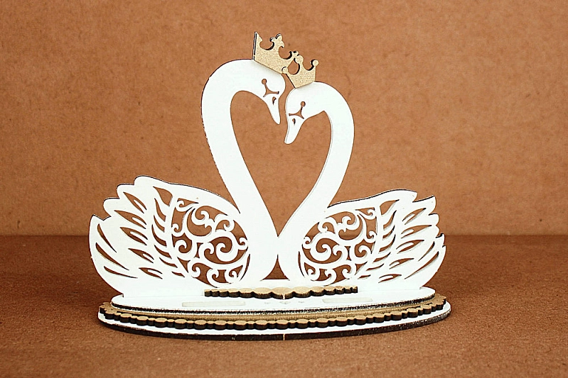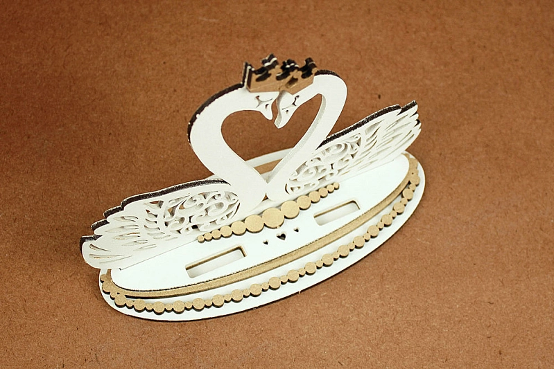 Б183-02-0301 Подставка под кольца "Лебеди" (17*7*13,5) МДФ 3мм, окрашен., оформл., Белый-золото, 1 шт.
