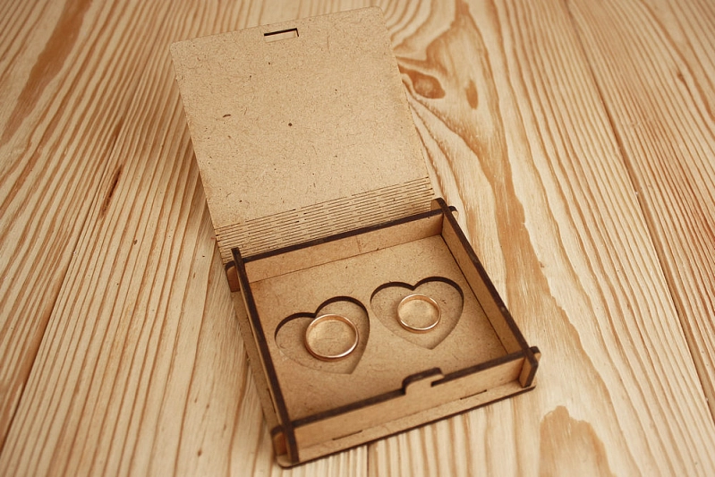 Шкатулка под кольца "Хохлома" с гравировкой (10*9,5*2,6) МДФ 3мм, окрашен. морилкой, Орех, 1 шт.