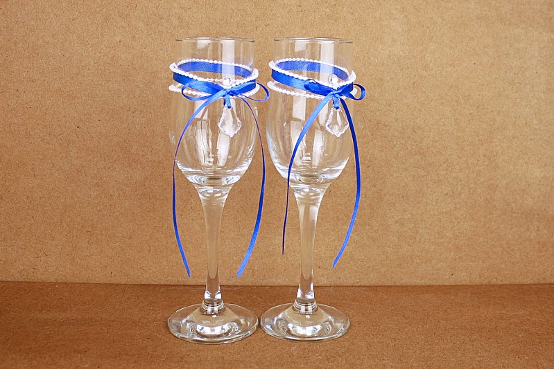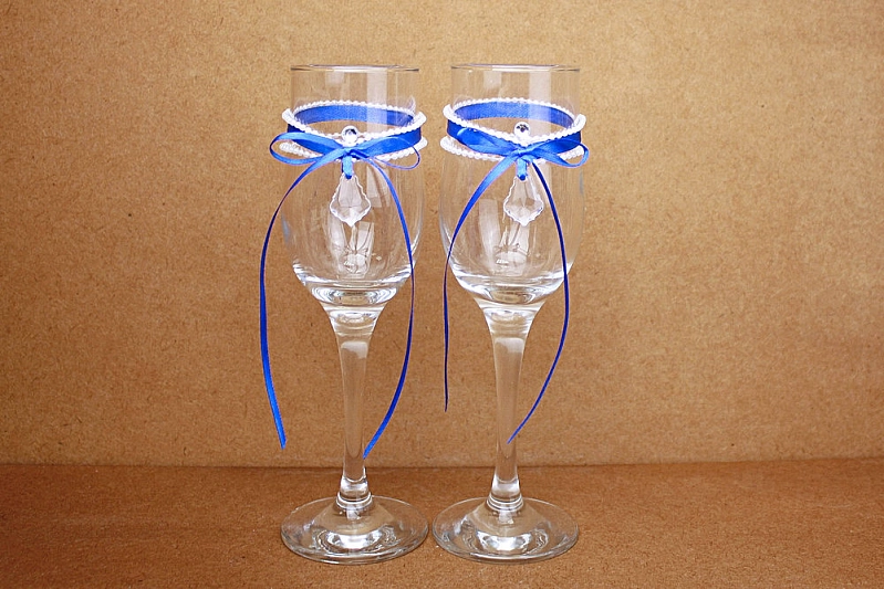 Бокалы ручной работы "Кристалл" (6*6*20,5) Бокалы Тулип, оформл., Синий-белый, Уп-2 шт.