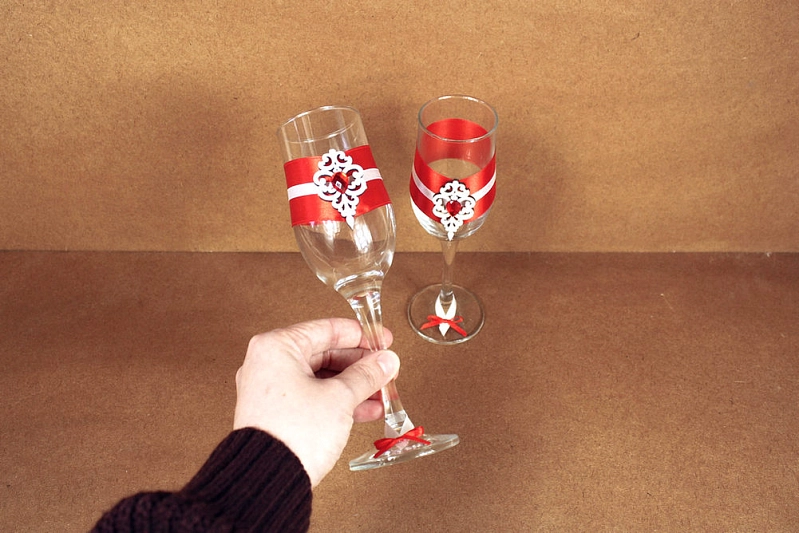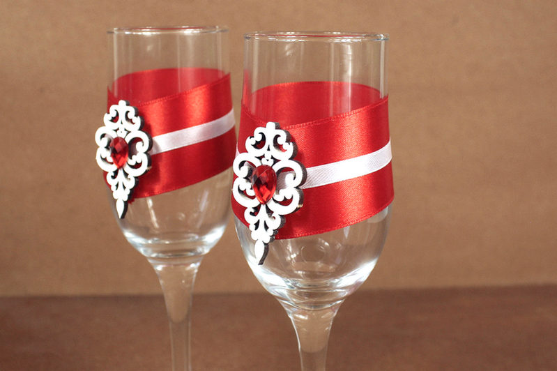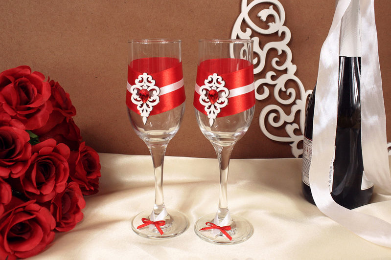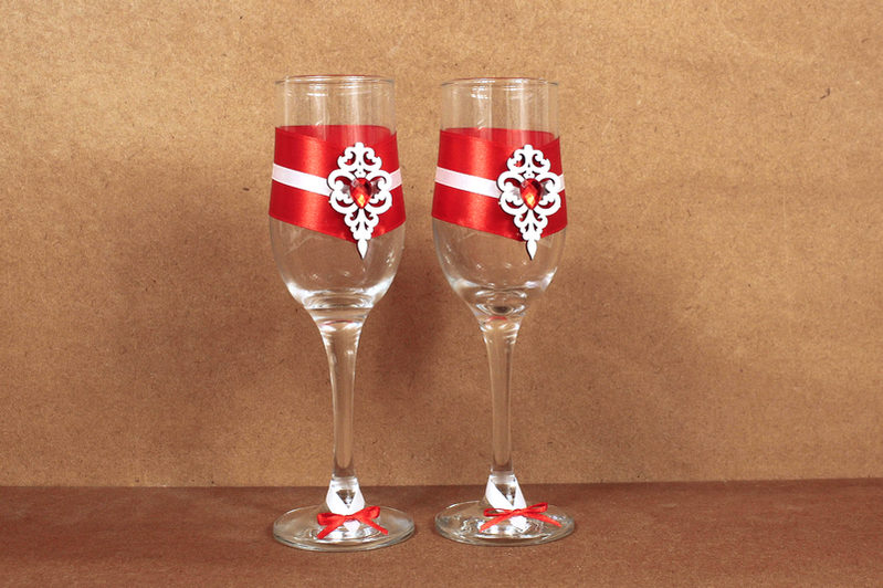 Бокалы ручной работы "Прага" (6*6*20,5) Бокалы Тулип, оформл., Белый-красный, Уп-2 шт.
