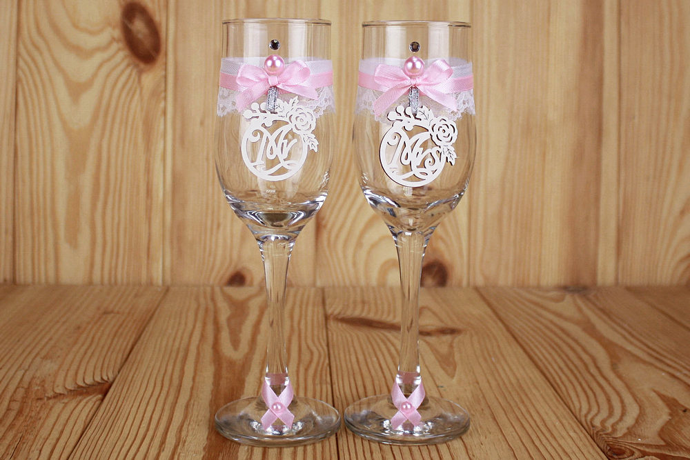 Бокалы ручной работы "Романтика" (6*6*20,5) Бокалы Тулип, оформл., Розовый пастель-серебро, Уп-2 шт.