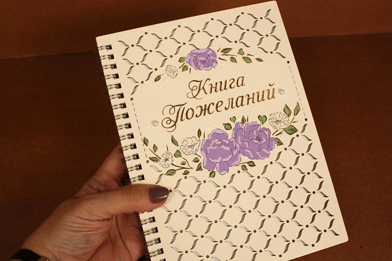 Книга пожеланий "Маргаритки" (16*21,5) МДФ, окрашен., оформл., Шампань пастель-сиреневый пастель, 1 шт.