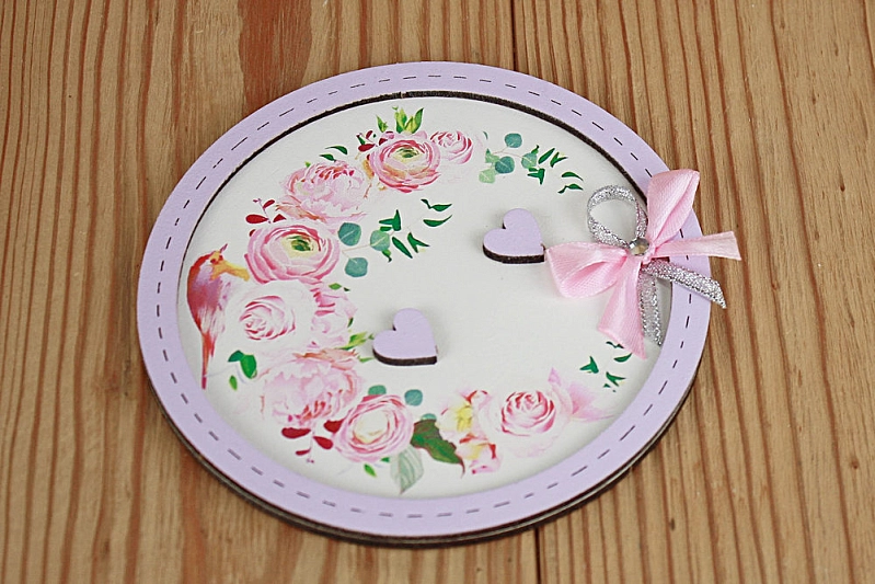 Подушечка под кольца "Весеннее настроение" (12,5*12,5**0,6) МДФ 3мм, УФ печать, окраш., оформл., Сиреневый пастель-розовый, 1 шт.