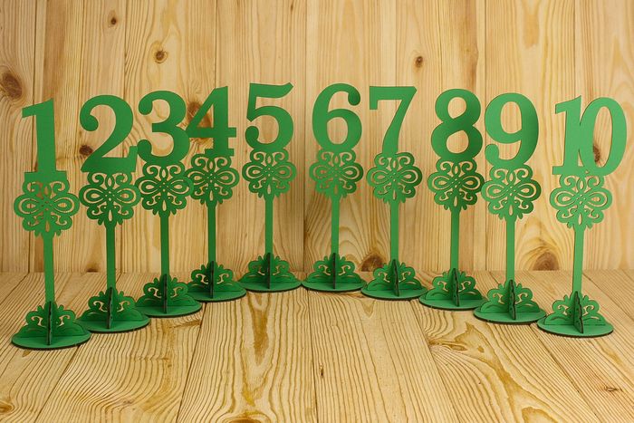 Номера на столы на подставке, высокие (8,8*8,8*27) МДФ 3мм, окрашен., Зелёный, Набор 10 шт