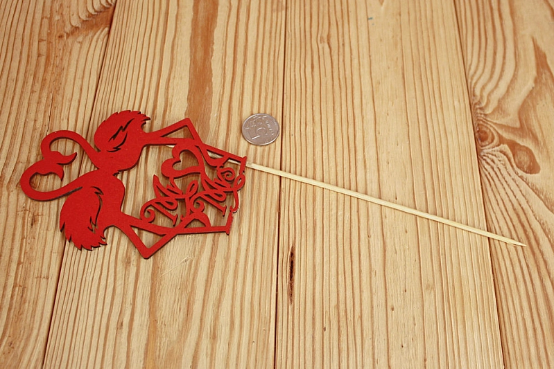 Топпер "Фламинго" (10*30) МДФ 3мм, окрашен. на шпажке, Красный, 1 шт.