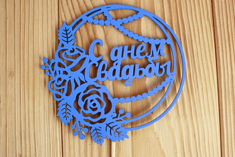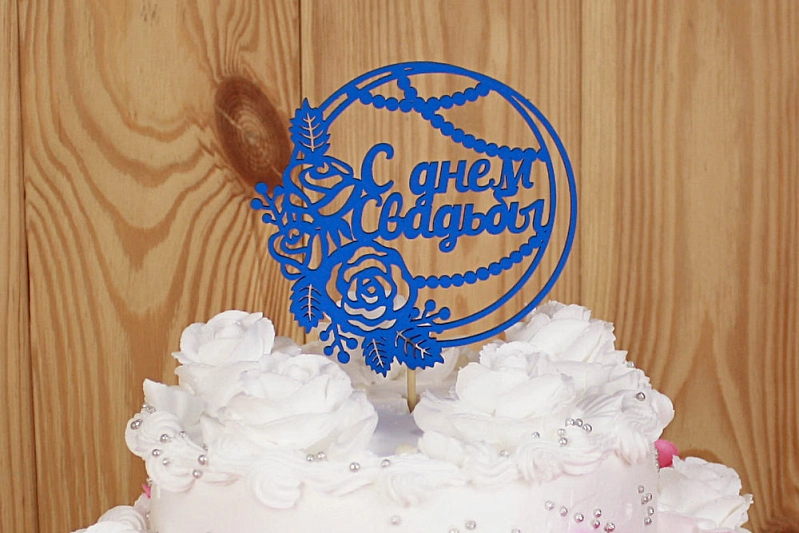 Прекрасное дополнение к свадебному торту или капкейкам! 🎉 Этот топпер "С днём Свадьбы" в форме круга, выполнен из качественного МДФ толщиной 3 мм и аккуратно окрашен в стильный синий цвет.