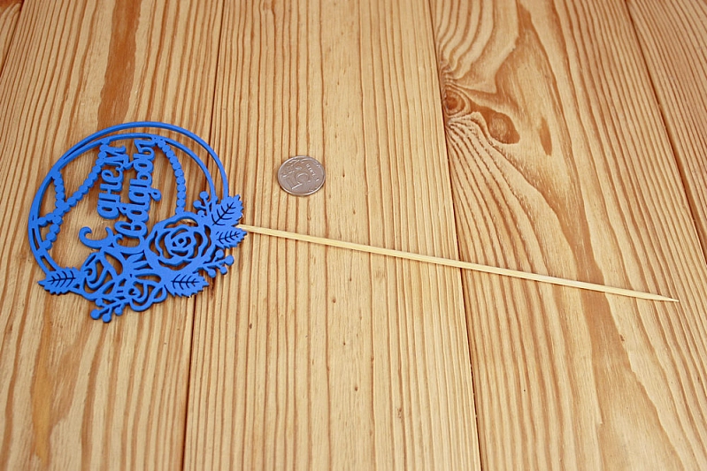 Топпер "С днём Свадьбы" в круге (11,2*30) МДФ 3мм, окрашен. на шпажке, Синий, Уп-10 шт.