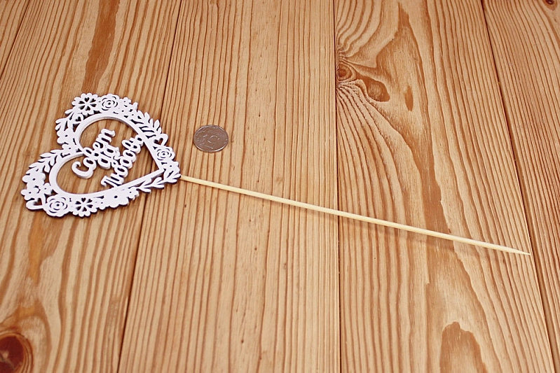 Топпер "Совет да Любовь" в сердце (10,5*30) МДФ 3мм, окрашен. на шпажке, Белый, 1 шт.