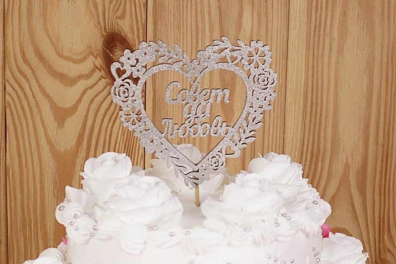 Очаровательный топпер для торта или капкейков "Совет да Любовь в сердце"!
