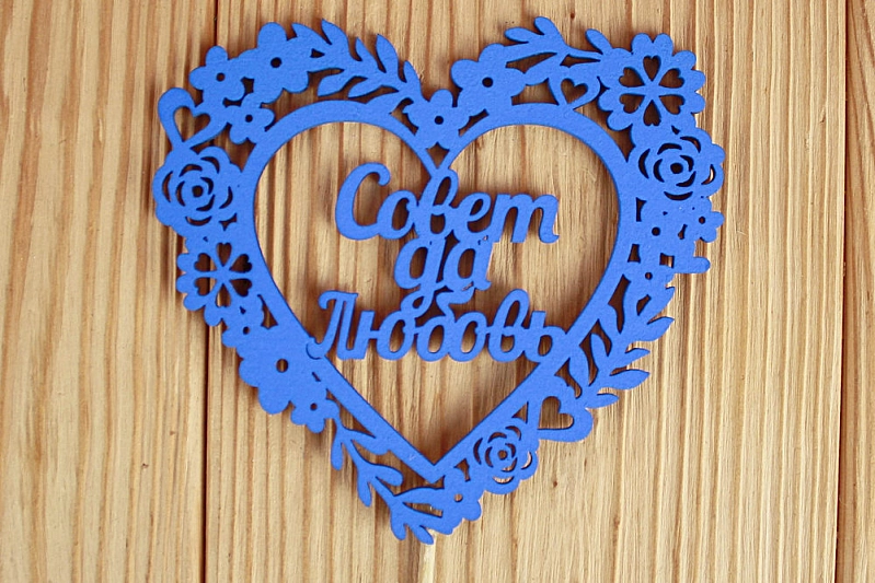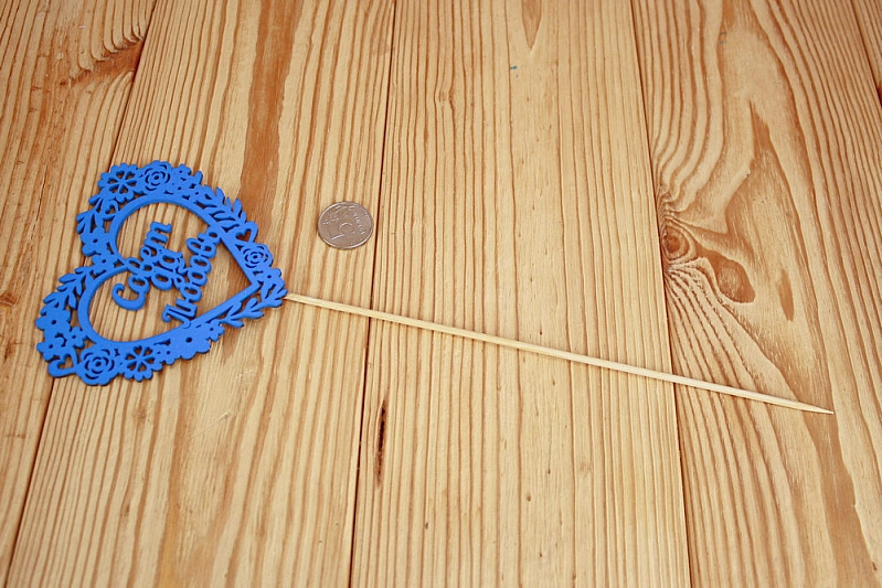 Топпер "Совет да Любовь" в сердце (10,5*30) МДФ 3мм, окрашен. на шпажке, Синий, 1 шт.