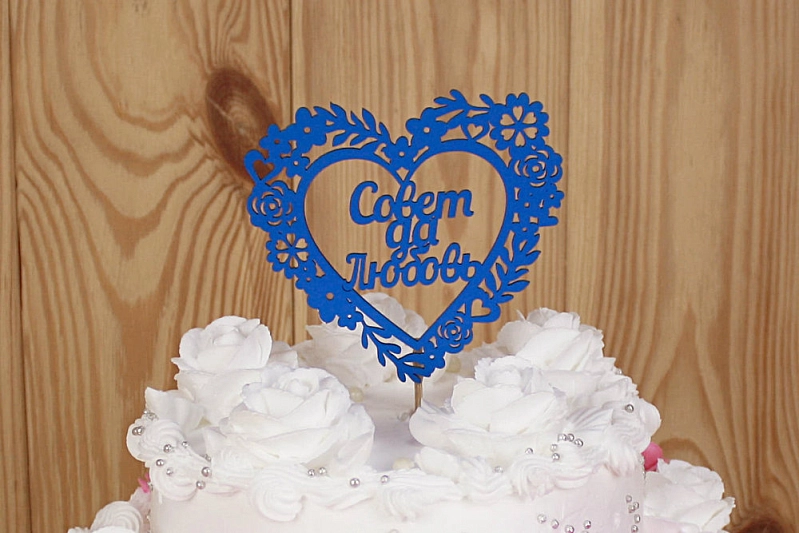 Оригинальный топпер для торта или капкейков "Совет да Любовь в сердце"!