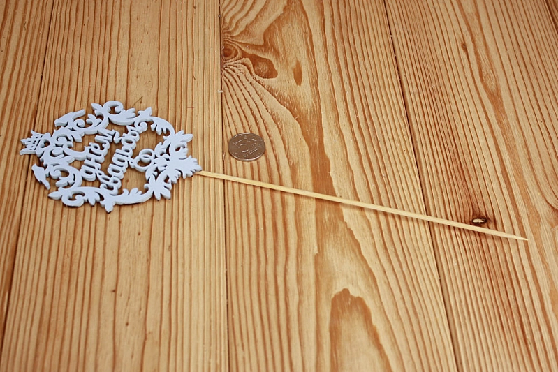 Топпер легко крепится к торту с помощью шпажки. Он станет прекрасным дополнением к свадебному декору и останется на память о вашем особенном дне! 🎉