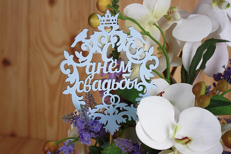 Изысканный топпер для свадебного торта "С днём свадьбы", герб