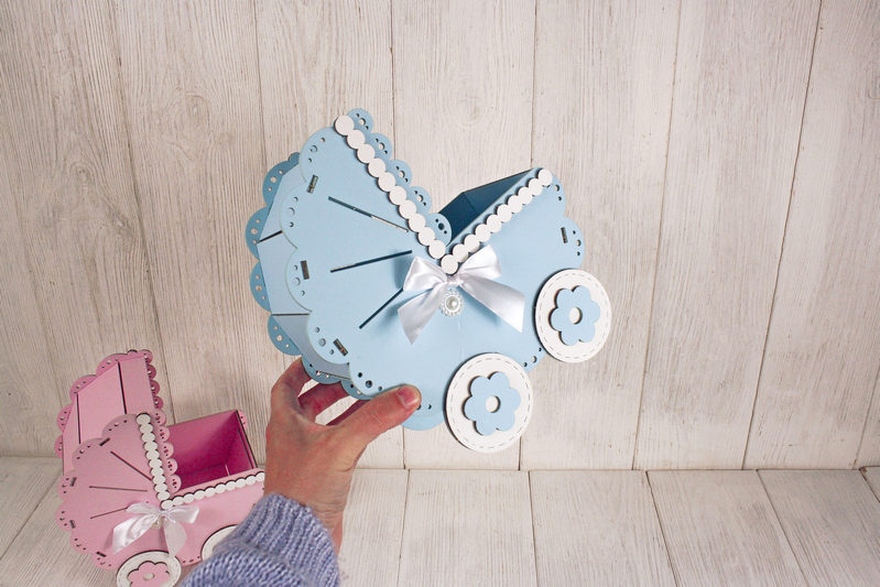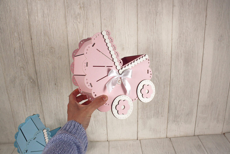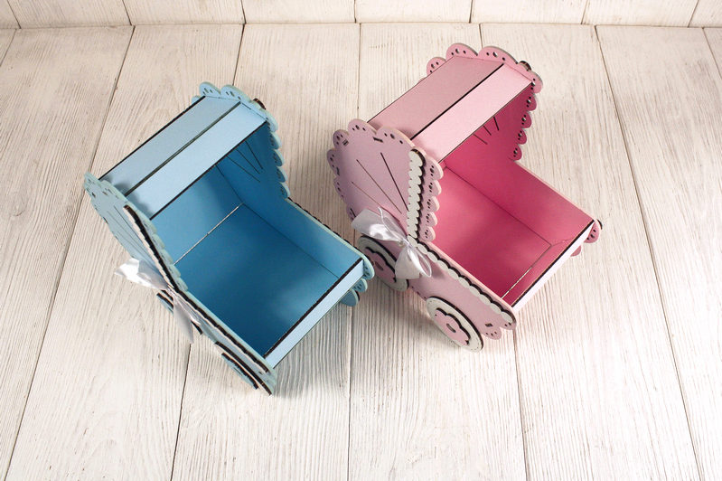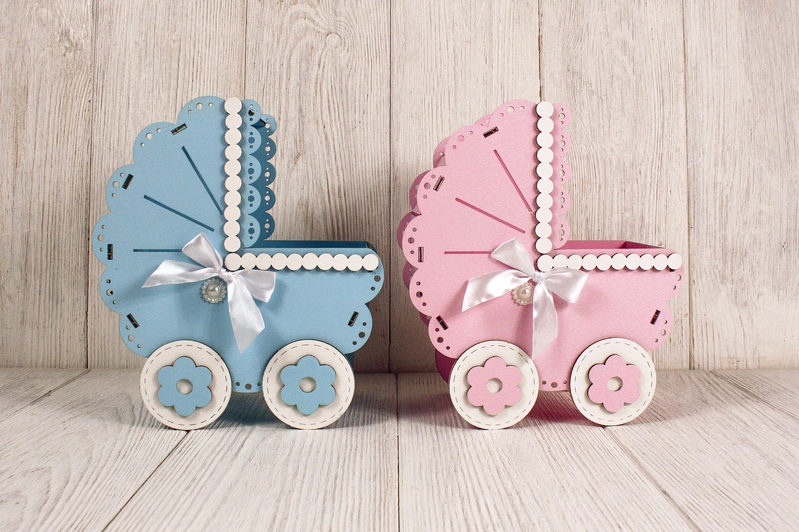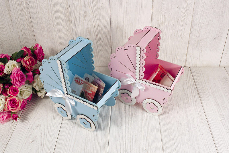 Б189-02-3946 Набор колясок для денег "На новорожденных" (19,5*11*22 - 2шт) МДФ, окрашен., оформл., Розовый пастель-голубой пастель, Набор