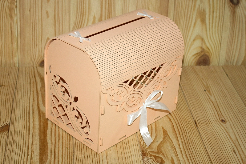 Б137-02-1403 Семейный банк "Ажурный" со стразами (23,5*17*20) МДФ 3мм, окрашен., оформл., Персиковый-белый, 1 шт.