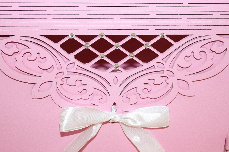 Б137-02-0503 Семейный банк "Ажурный" со стразами (23,5*17*20) МДФ 3мм, окрашен., оформл., Розовый-белый, 1 шт.