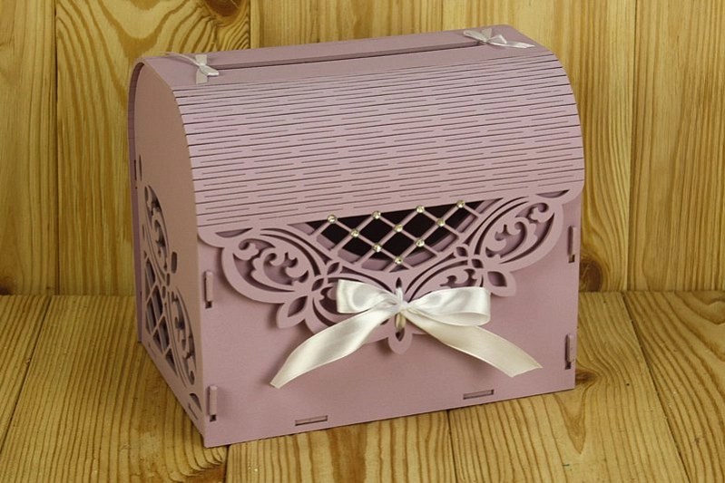 Семейный банк "Ажурный" со стразами МИНИ (20*15*17,5) МДФ 3мм, окрашен., оформл., Лавандовый-белый, 1 шт.