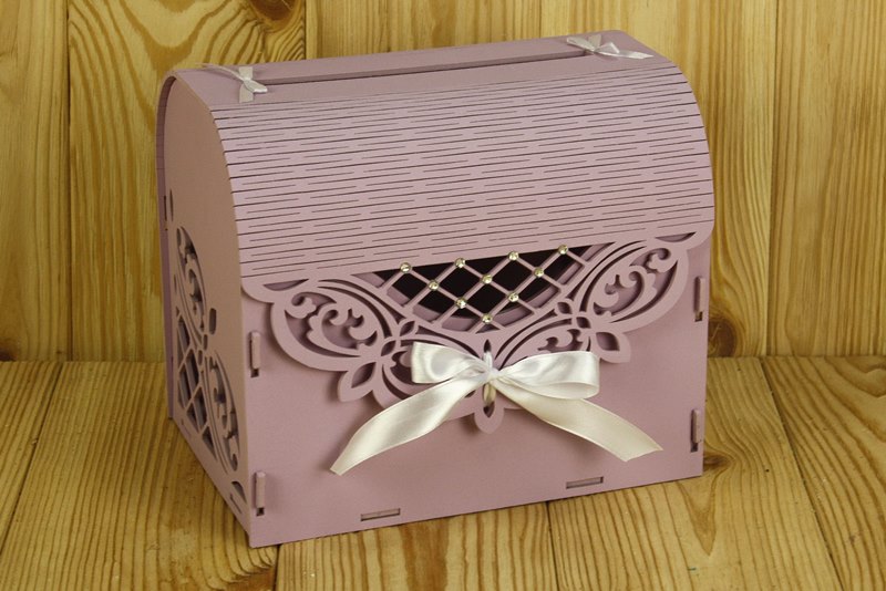 Б190-02-4303 Семейный банк "Ажурный" со стразами МИНИ (20*15*17,5) МДФ 3мм, окрашен., оформл., Лавандовый-белый, 1 шт.