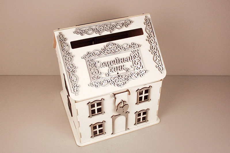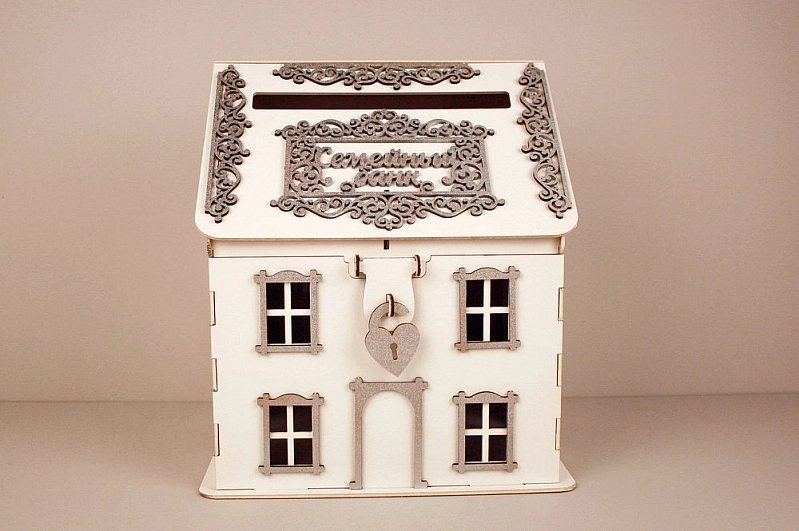Семейный банк "Дом" №2 (24,5*24*28) МДФ, окрашен., оформл., Белый-серебро, 1 шт.