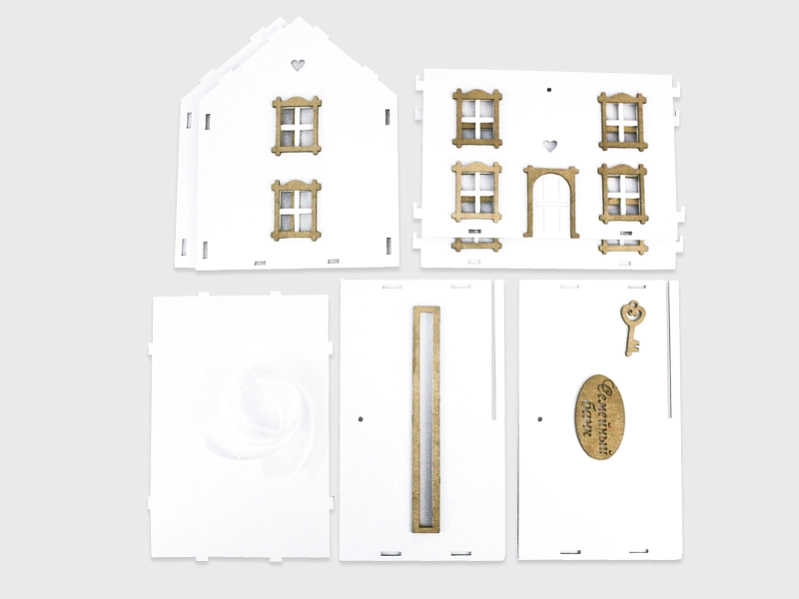 Семейный банк "Дом" МИНИ (22,5*19*22) МДФ, окраш, оформл., Белый-золото, 1 шт. БЕЗ СБОРКИ