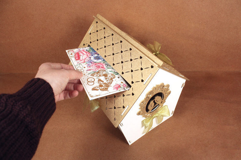 Семейный банк "Дом" с птицами (22,5*21*23,5) МДФ 3мм, окрашен., оформл., Белый-золото, 1 шт.