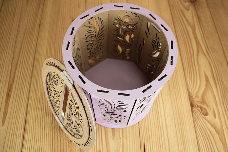 Б162-02-4003 Семейный банк "Хохлома" (18,5*18,5*19) МДФ 3мм, окрашен., оформл., Сиреневый пастель-белый, 1 шт.