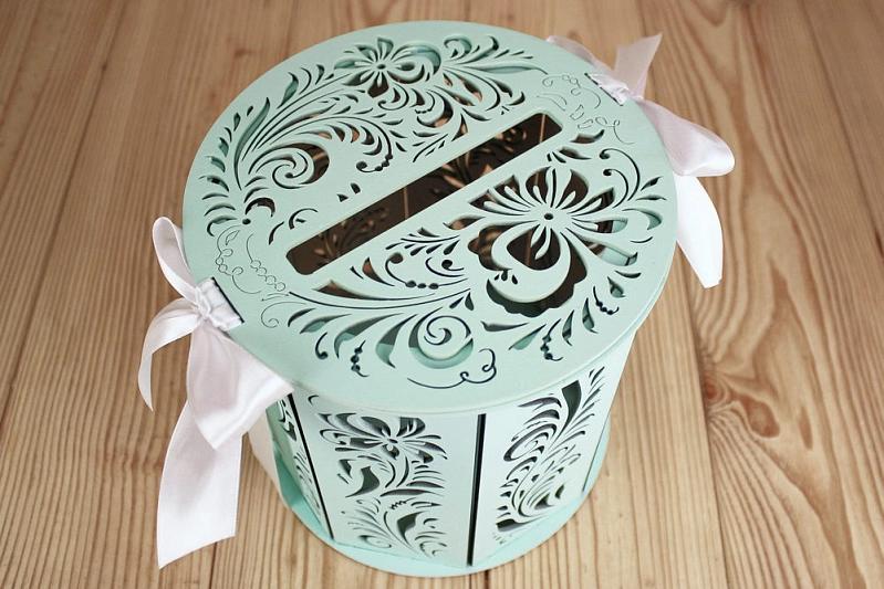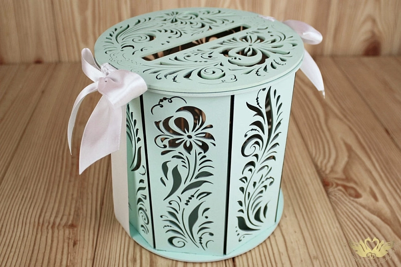 Семейный банк "Хохлома" (18,5*18,5*19) МДФ 3мм, окрашен., оформл., Тиффани пастель-белый, 1 шт.