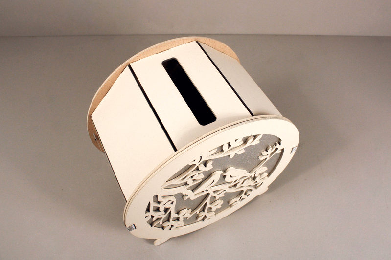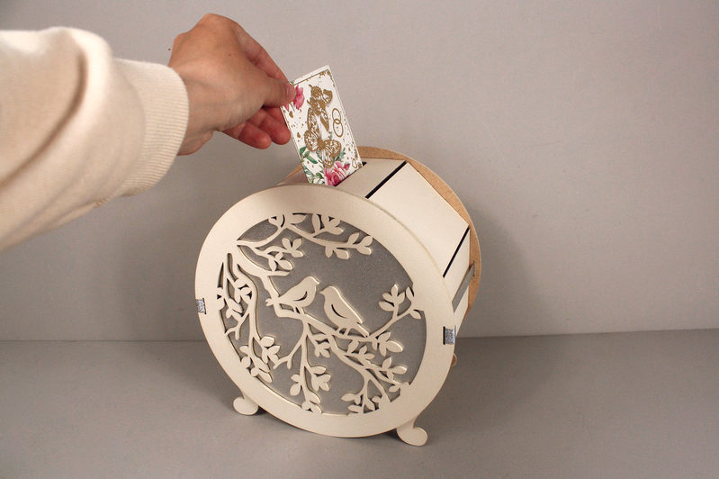 Б165-02-5202 Семейный банк "Птицы" (21,7*13*21,7) МДФ 3мм, окрашен., оформл., Айвори-серебро, 1 шт.