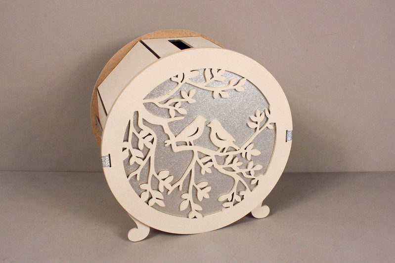 Семейный банк "Птицы" (21,7*13*21,7) МДФ 3мм, окрашен., оформл., Айвори-серебро, 1 шт.