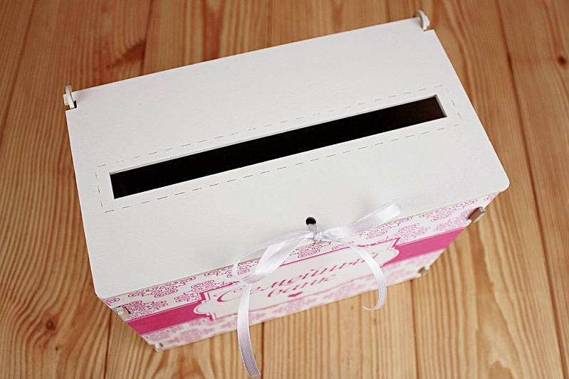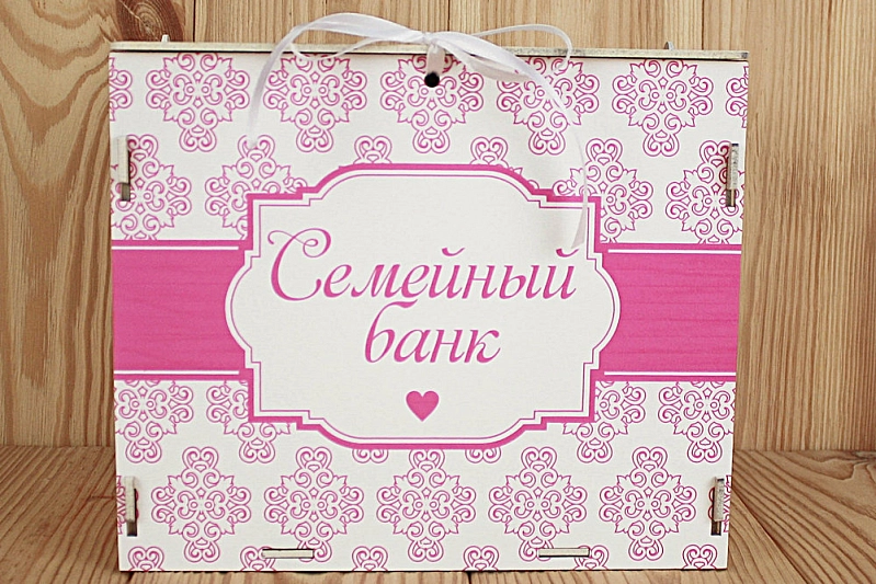 Семейный банк с печатью (24*14*20) МДФ 3мм, УФ печать, окраш., оформл., Белый-розовый, 1 шт.