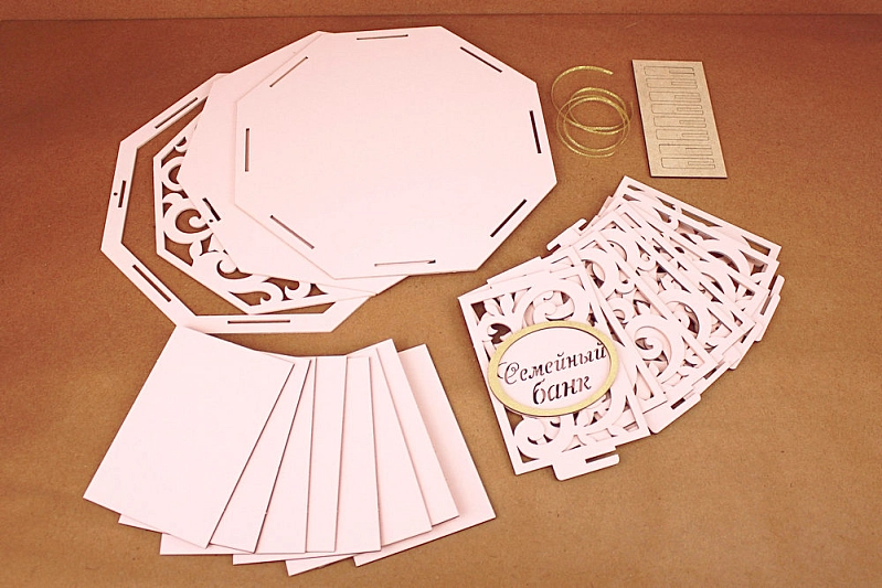 Семейный банк с вензелями, 8 граней (27*27*16,5) МДФ 3мм, окрашен., оформл., Пудровый-золото, 1 шт.