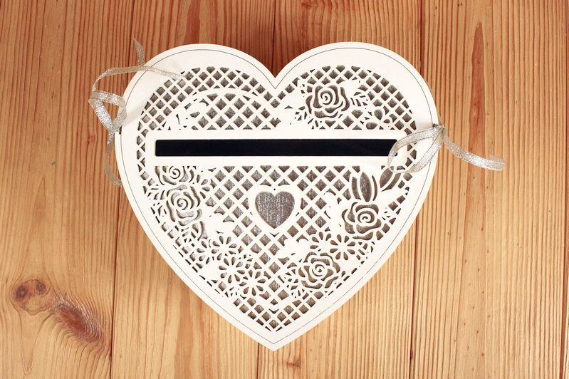 Семейный банк "Сердце" (23*21,5*10) МДФ 3мм, окрашен., оформл., Белый-серебро, 1 шт.